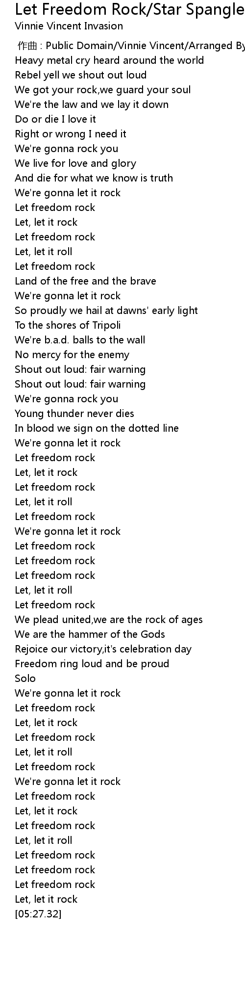 | Song | Let Freedom Rock/Star Spangled Banner/ (Medley) (Intro) (2003 Digital Remaster) |