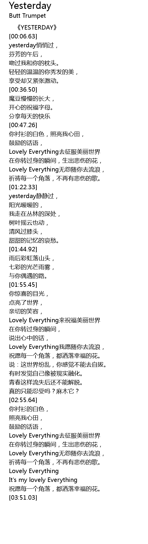 | [03:03.84] | Lovely Everything qu zheng fu mei li shi jie |