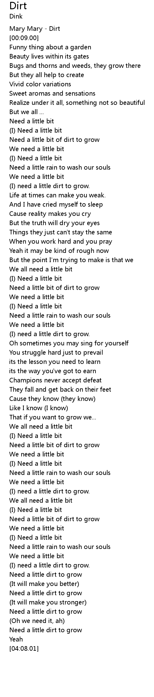 | [04:01.20] | Need a little dirt to grow |