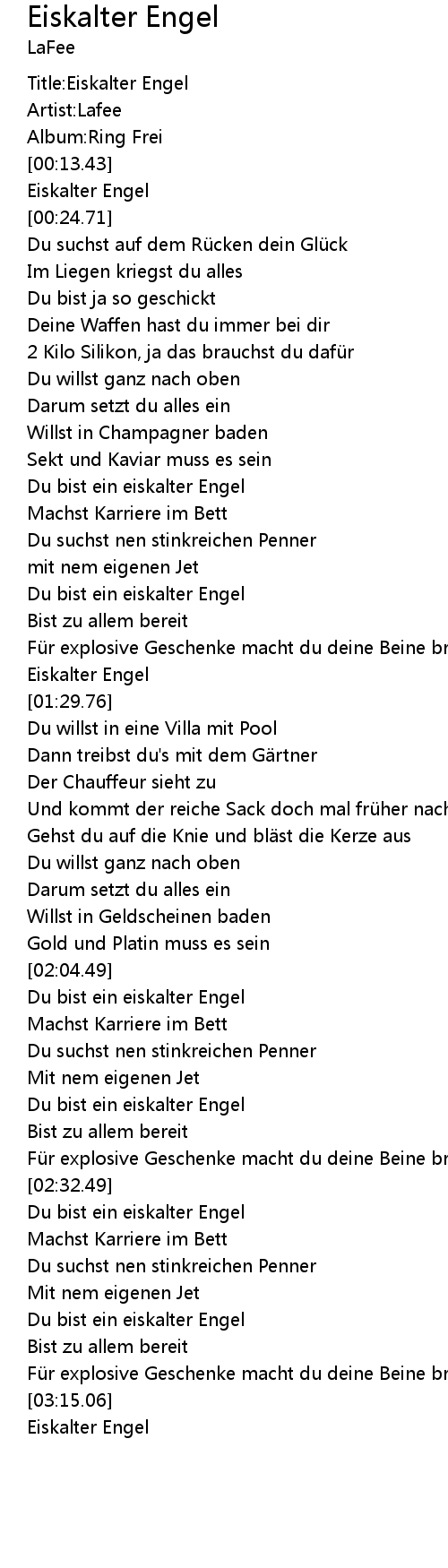 | [02:06.64] | Du bist ein eiskalter Engel |