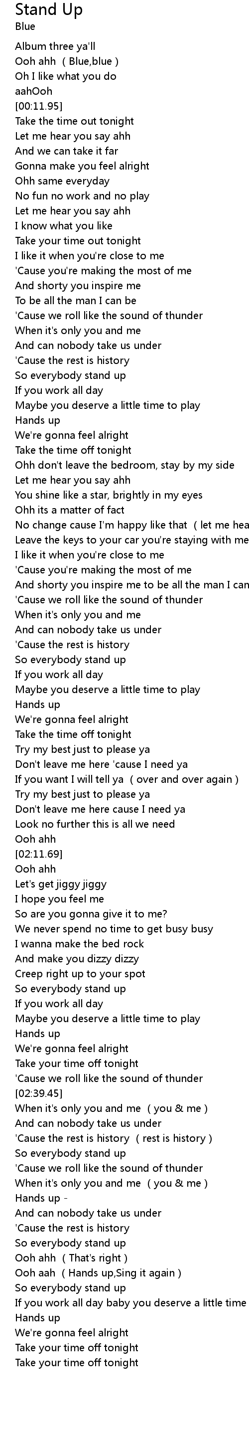 | [02:47.77] | So everybody stand up |