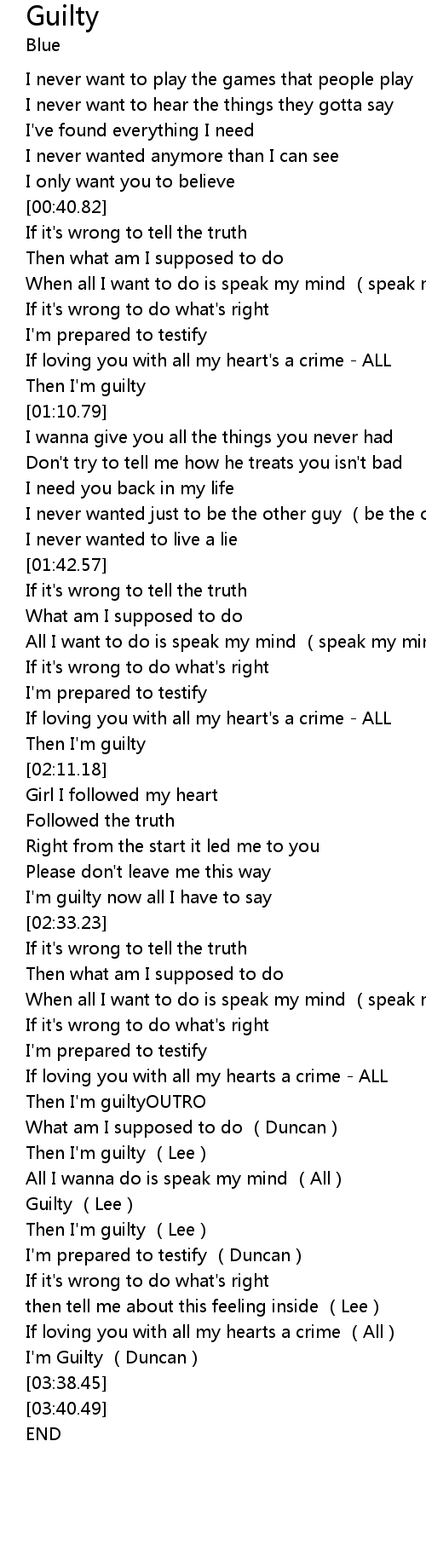 | [02:58.41] | Then I' m guiltyOUTRO |