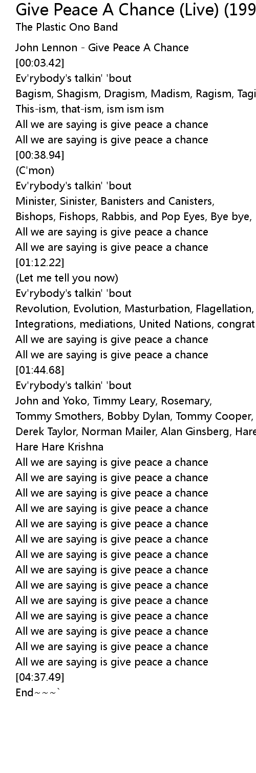 Give Peace A Chance (Live) (1995 Digital Remaster) Lyrics