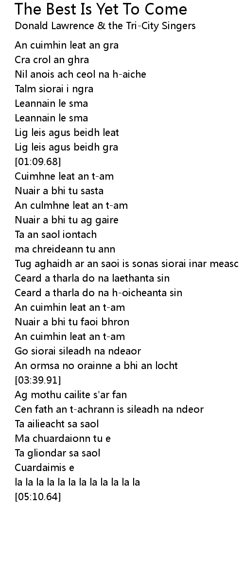 The Best Is Yet To Come Lyrics