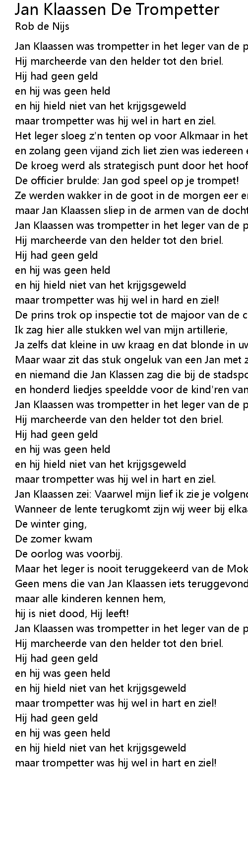 Jan Klaassen was trompetter in het leger van de prins. |