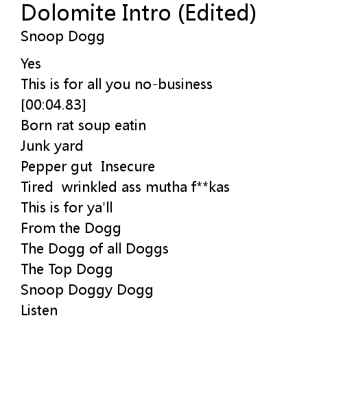 | [00:11.66] | Tired wrinkled ass mutha f**kas |