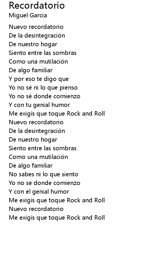 | Song | Recordatorio |