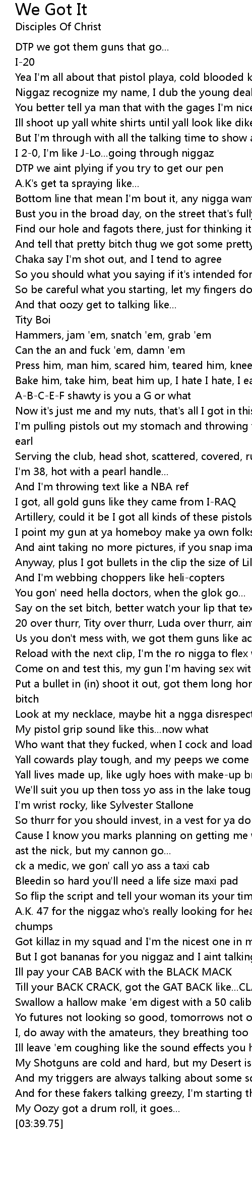 [00:47.21] And tell that pretty bitch thug we got some pretty big gats