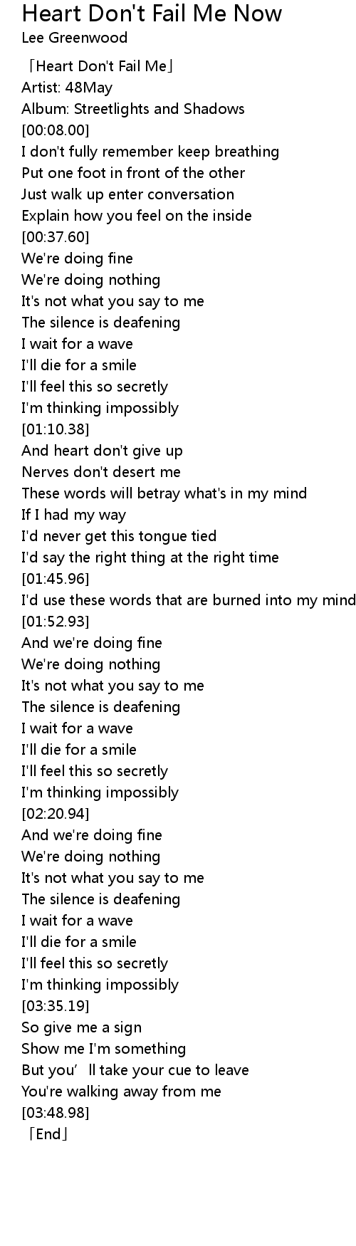 | [00:00.51] | 「Heart Don't Fail Me」 |