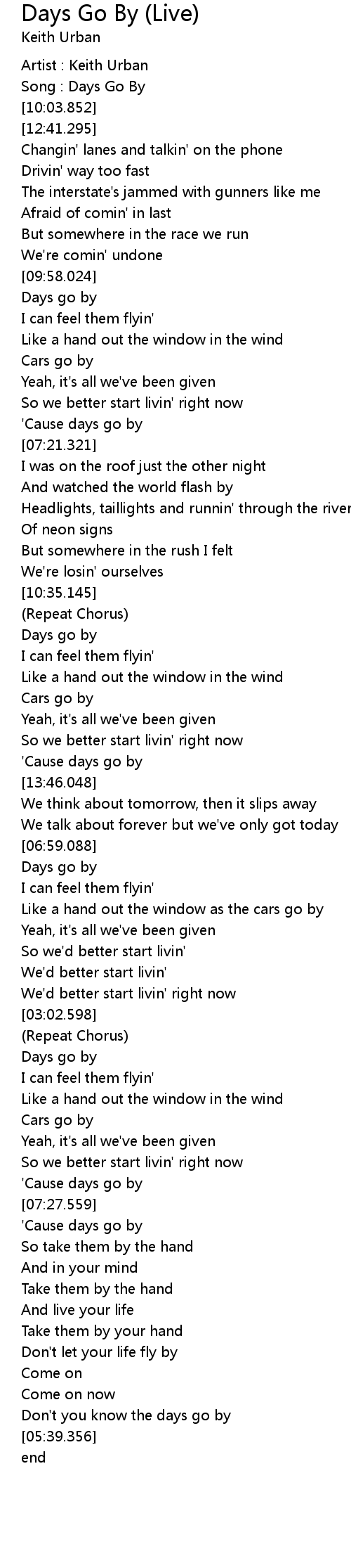 Don't you know the days go by |