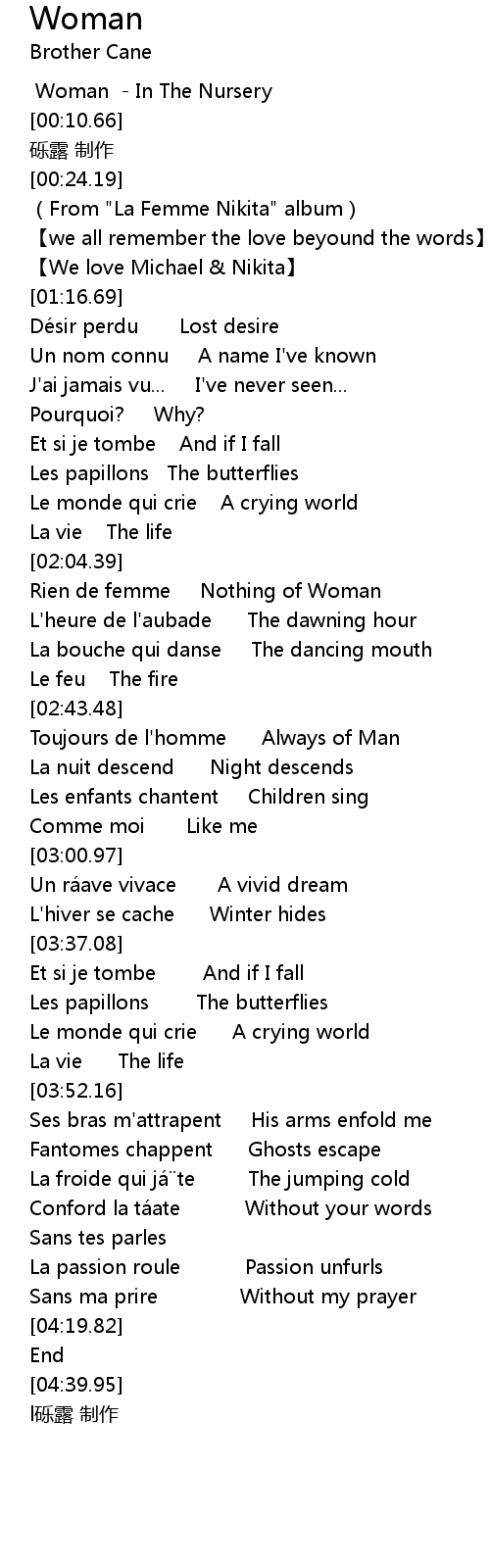 | [00:00.00] | Woman - In The Nursery |