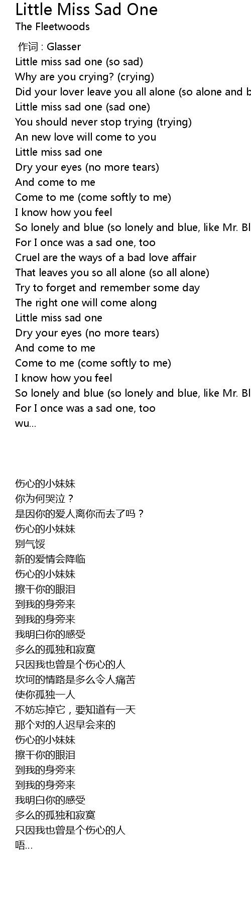 | [00:17.25] | Little miss sad one (so sad) |