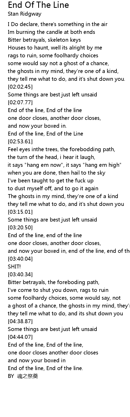 | [03:27.85] | and now your boxed in, end of the line, end of the line |