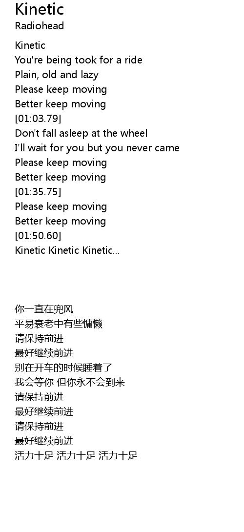 | [01:51.52] | Kinetic Kinetic Kinetic... |