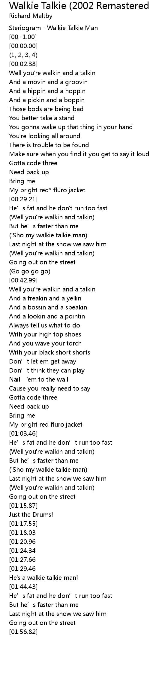 | [01:08.87] | ('Sho my walkie talkie man) |