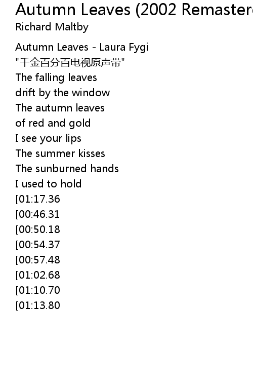 | [00:00.00] | Autumn Leaves Laura Fygi |
