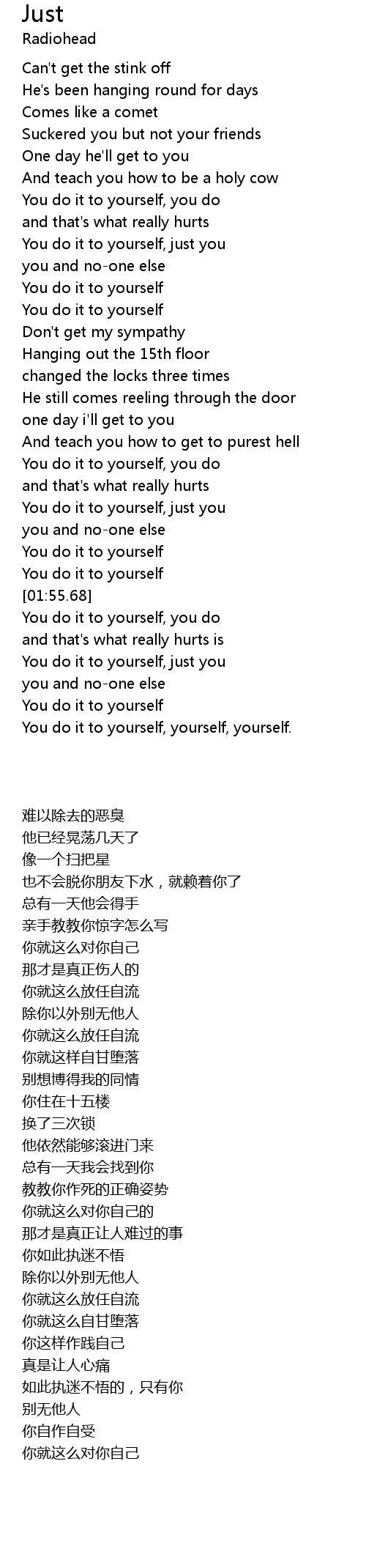| [00:49.65] | You do it to yourself, just you |