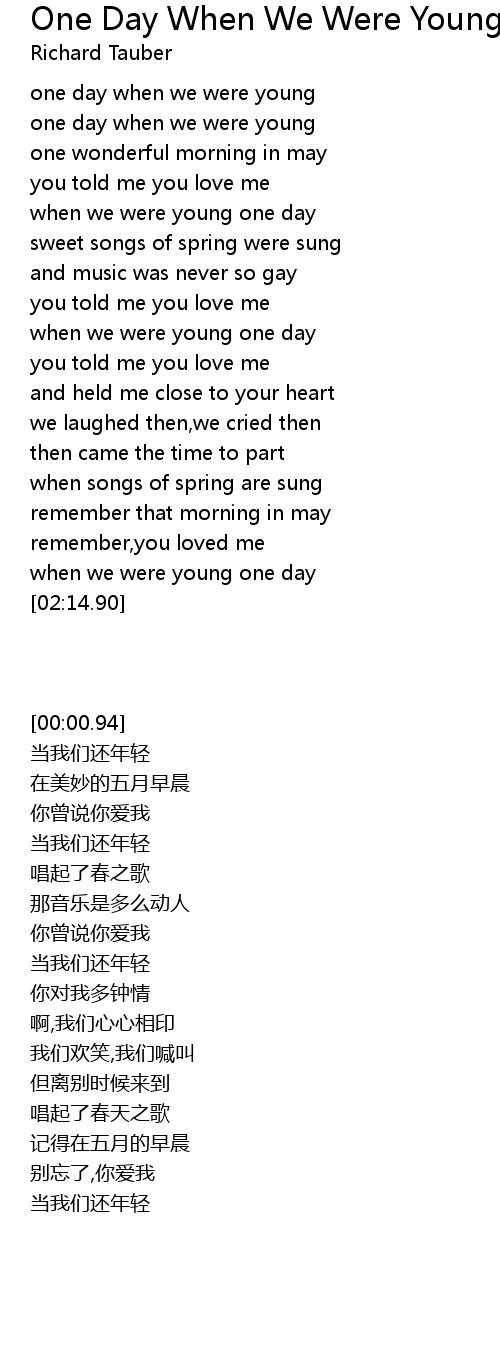 when we were young one day |