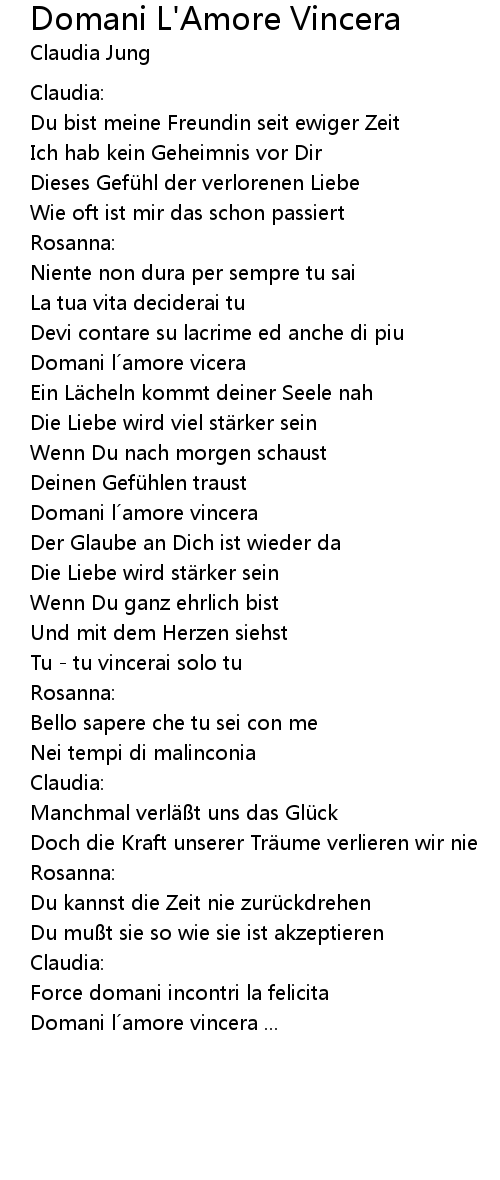 | Domani l´amore vincera ... |