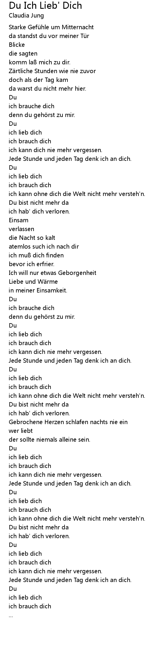 | ich kann ohne dich die Welt nicht mehr versteh' n. | |
