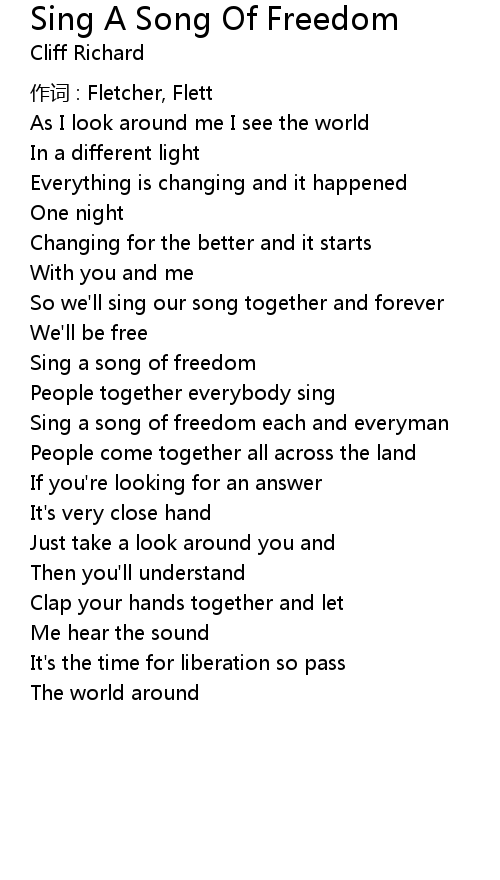 | Sing a song of freedom each and everyman | |