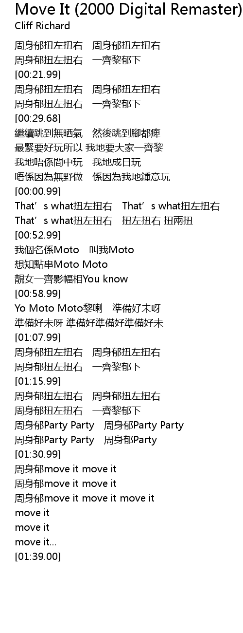 | [01:31.00] | 周身郁move it move it |