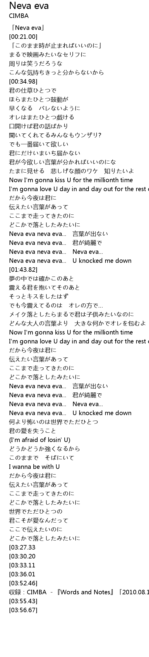 | [03:39.06][03:27.33] | Neva eva neva eva... 言葉が出ない |