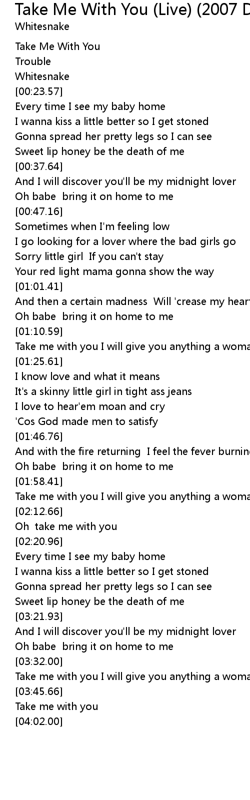 Take Me With You (Live) (2007 Digital Remaster) Lyrics