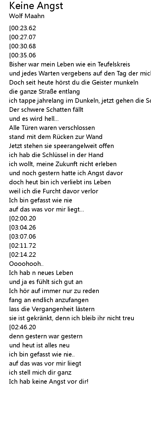 | [03:28.32][00:23.62] | Titel : Keine Angst |
