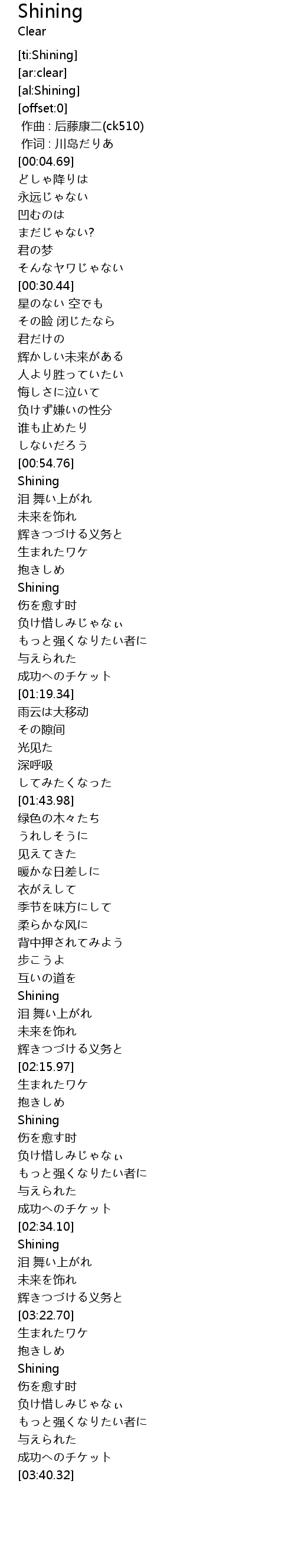 | [00:00.00] | 作曲 : 后藤康二(ck510) |