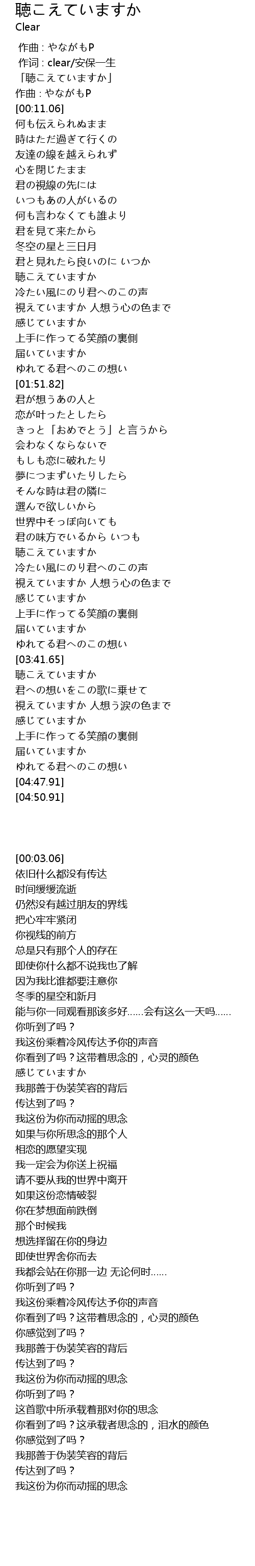 | [03:00.81] | 冷たい風にのり君へのこの声 |
