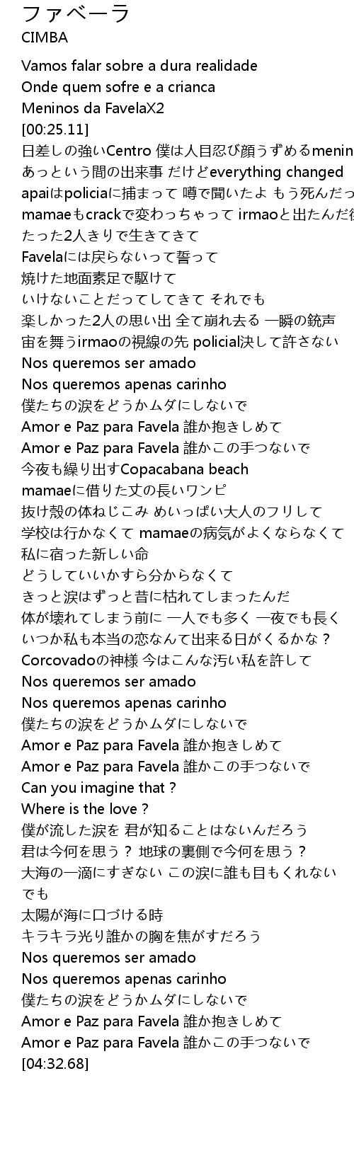 | [03:53.62] | Amor e Paz para Favela 誰か抱きしめて |