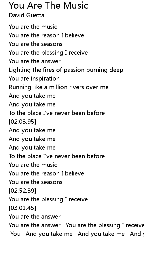 [03:05.80] You are the answer You are the blessing I receive You You You You And you take me And you take me And you take me And you take me