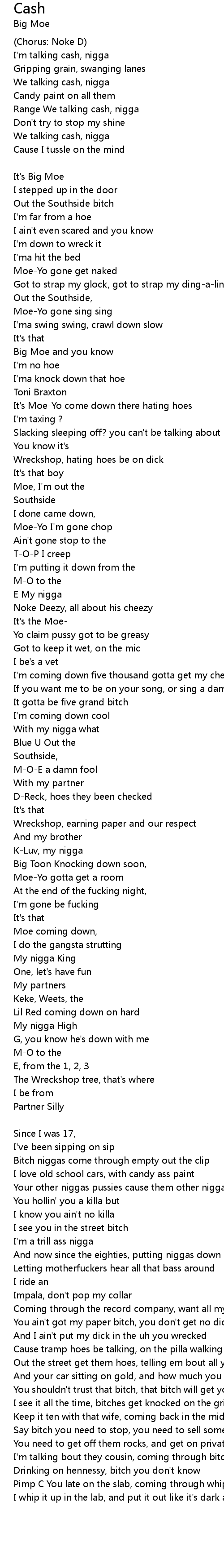 I'm talking cash, nigga - 4x [Big Moe] |