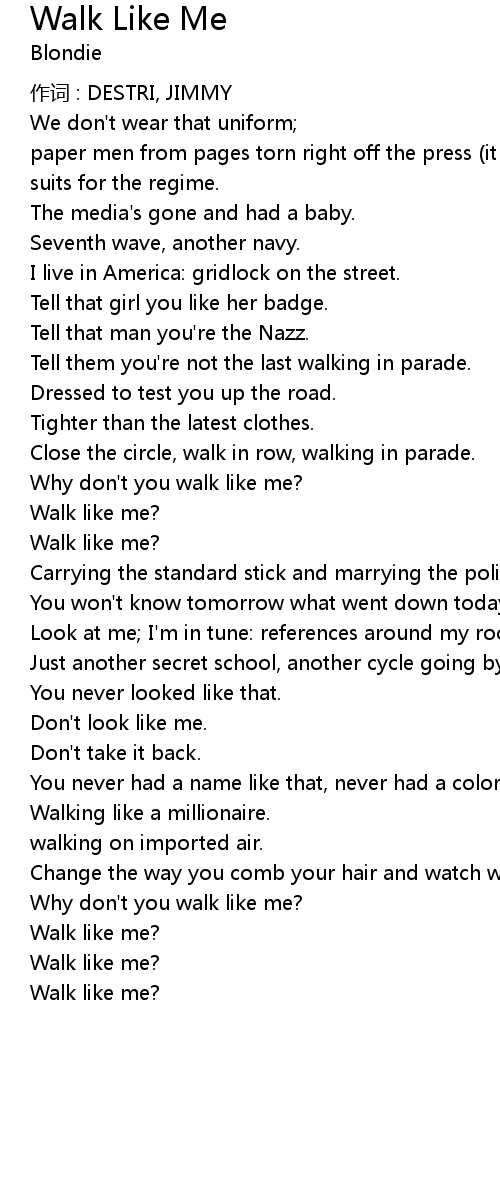 | Why don' t you walk like me? | |