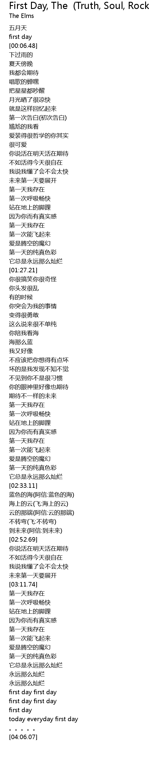 | [03:31.25] | di yi tian de chun zhen se cai |