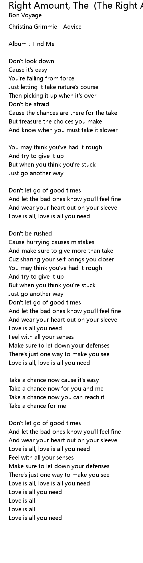| Song | Right Amount, The (The Right Amount Album Version) |