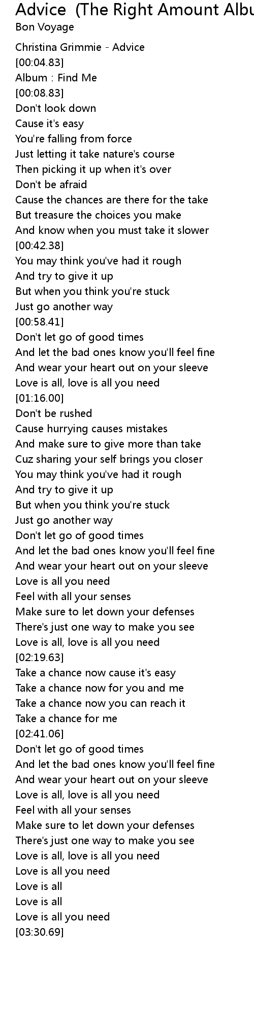 | [01:04.28] | And let the bad ones know you'll feel fine |