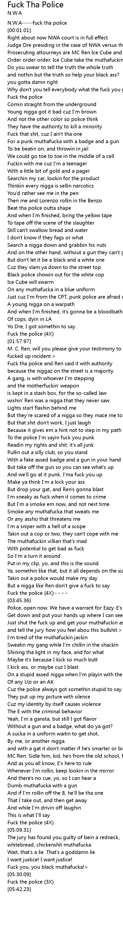 | [02:17.67] | Fuck tha police and Ren said it with authority |