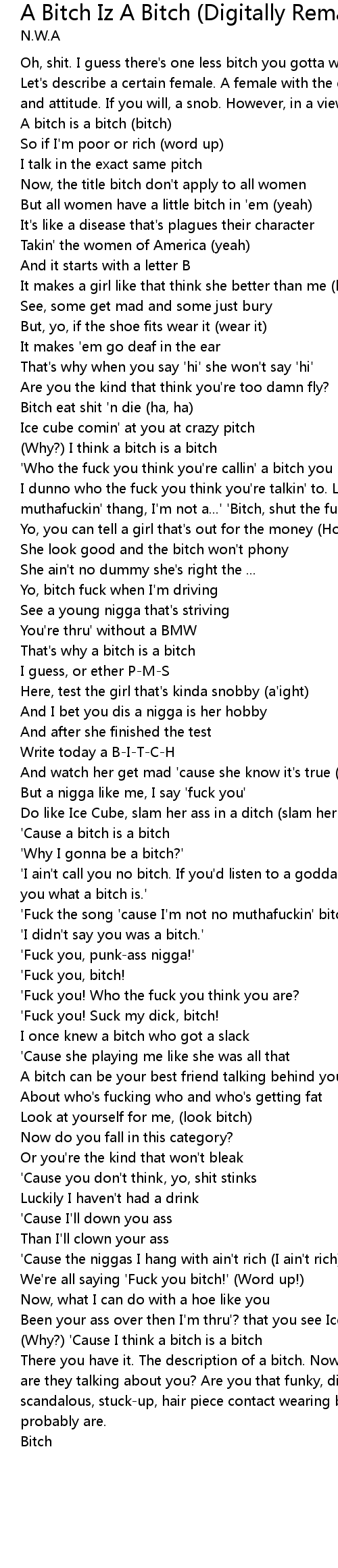 A Bitch Iz A Bitch (Digitally Remastered 02) Lyrics