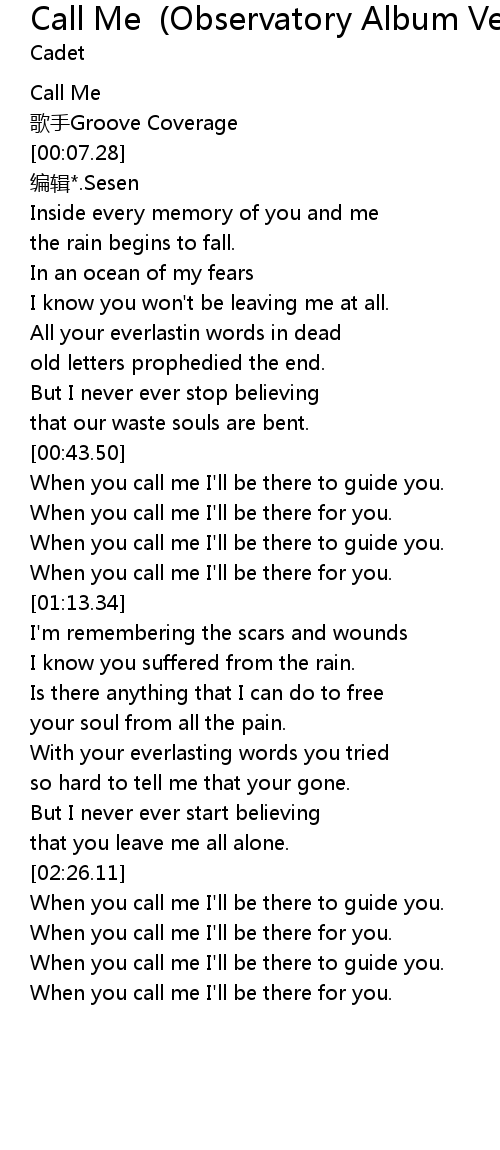 | [00:44.17] | When you call me I'll be there to guide you. |