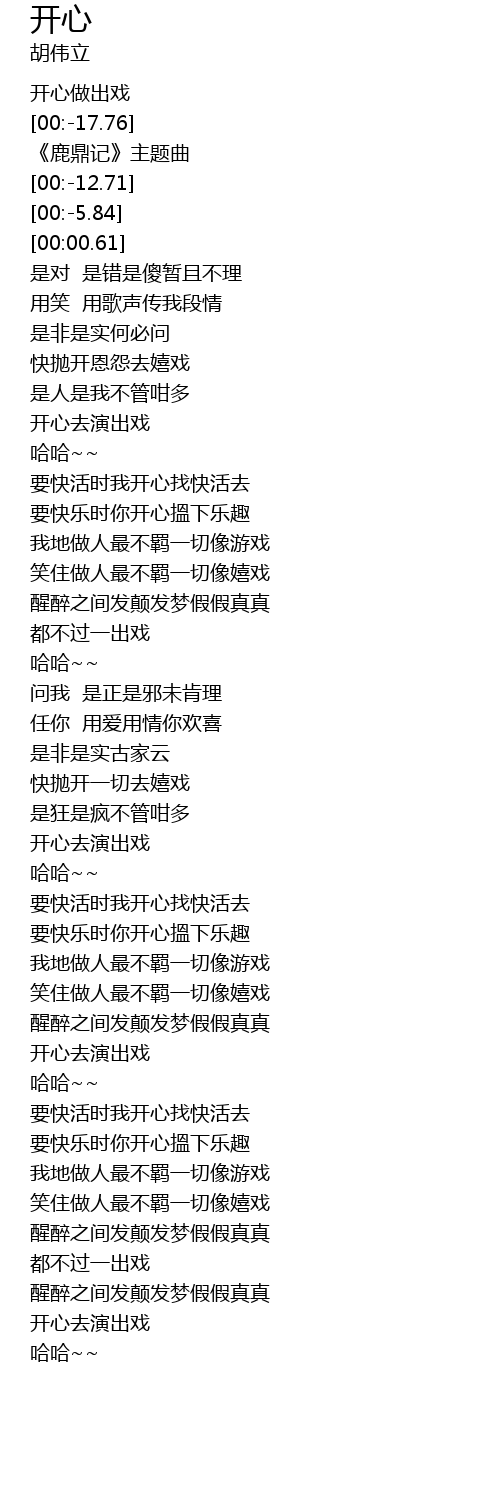 | [01:56.00] | 开心去演出戏 |