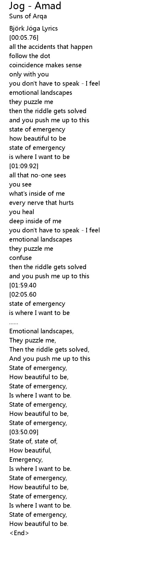 | [02:20.68][01:59.40] | state of emergency |