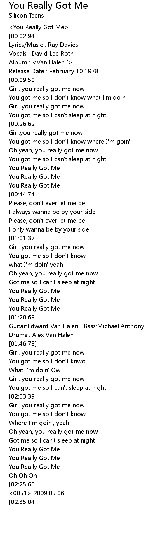 [01:22.52] Guitar:Edward Van Halen Bass:Michael Anthony
