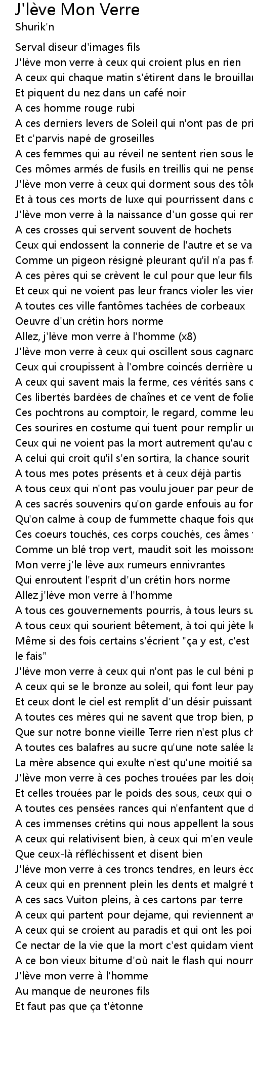 | J' lè ve mon verre à ceux qui dorment sous des t les parci parlà | |
