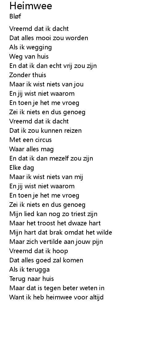 Want ik heb heimwee voor altijd |