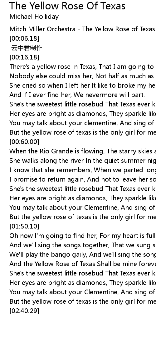 | [02:35.15] | But the yellow rose of texas is the only girl for me. |