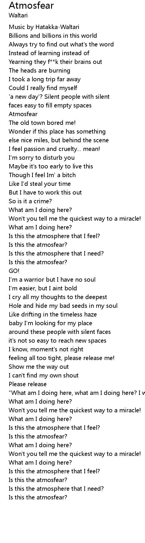 | "What am I doing here, what am I doing here? I wanna leave this place" | |