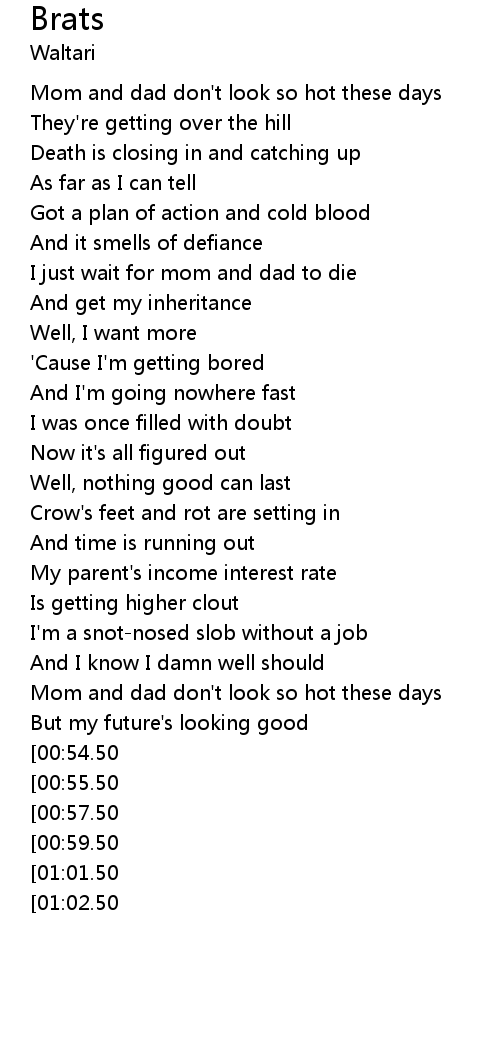 | [00:00.00] | Mom and dad don't look so hot these days |