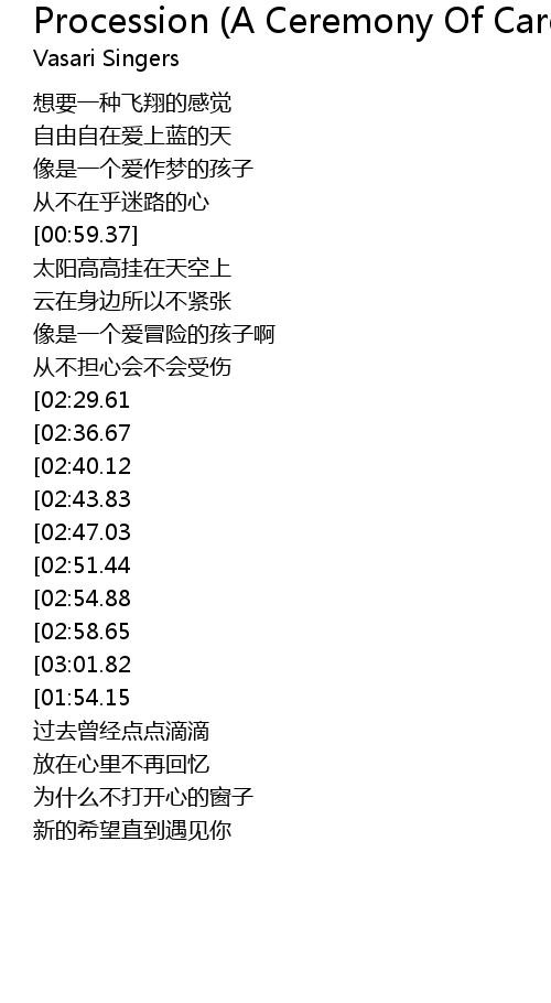 | [02:15.97] | xīn de xī wàng zhí dào yù jiàn nǐ |